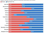 TA英超冠军问卷:热刺等11队球迷支持曼城,曼联等7队球迷站阿森纳